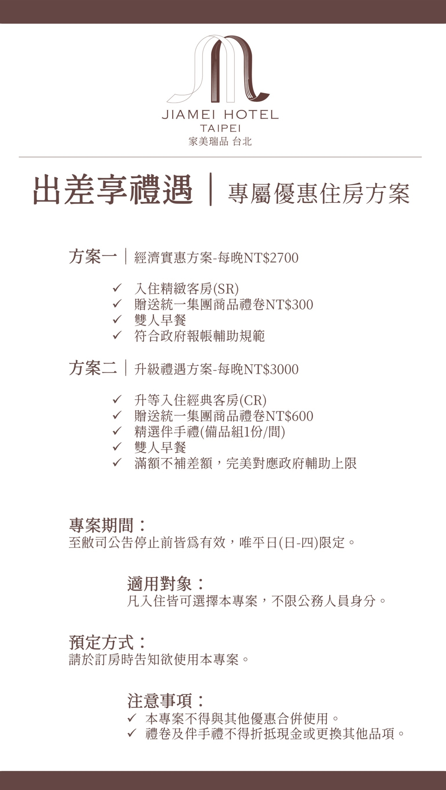 感謝您選擇入住 家美瑞品飯店,我們誠摯歡迎您的蒞臨!