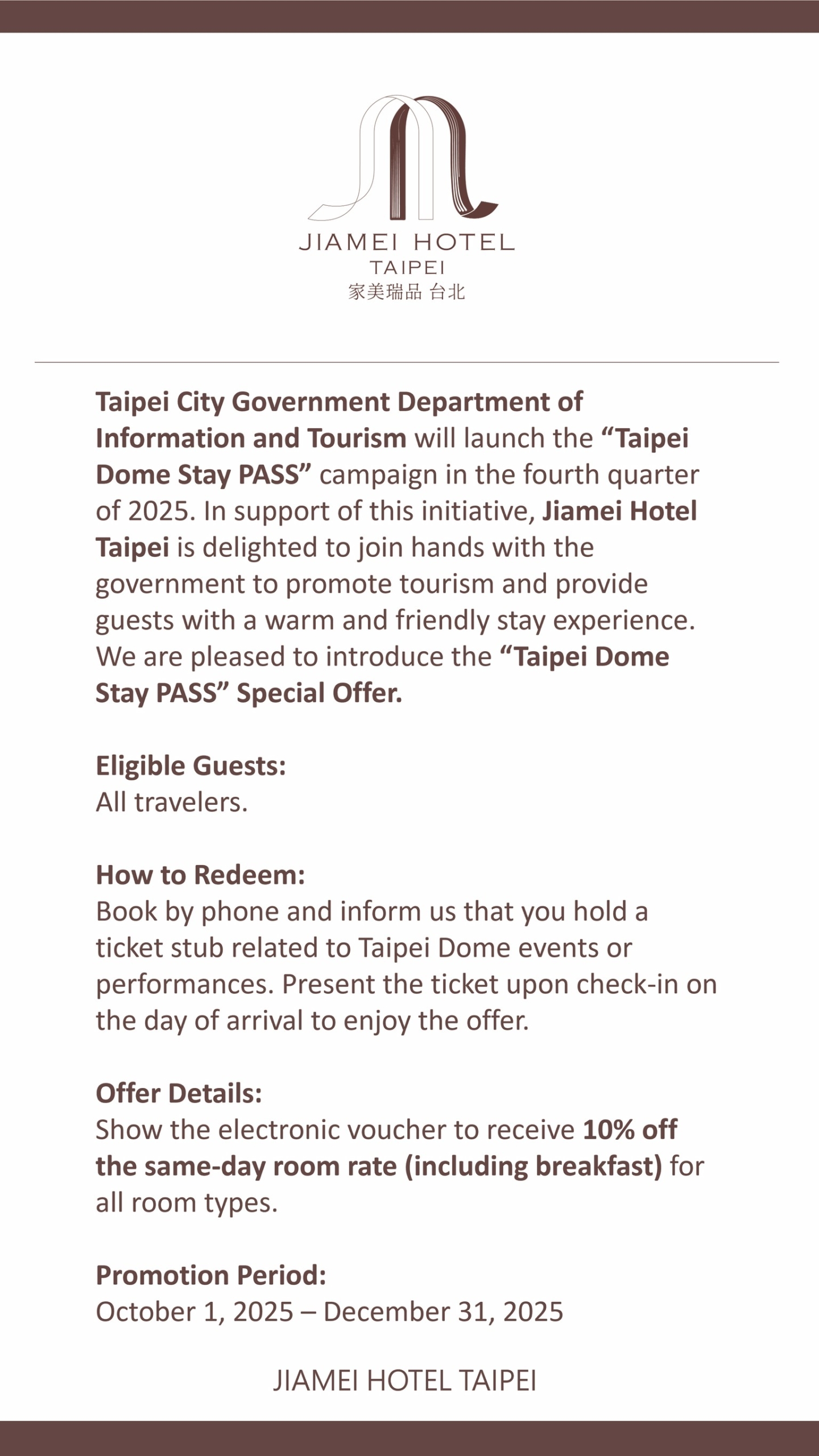 📍 家美瑞品 台北 Jiamei Hotel Taipei